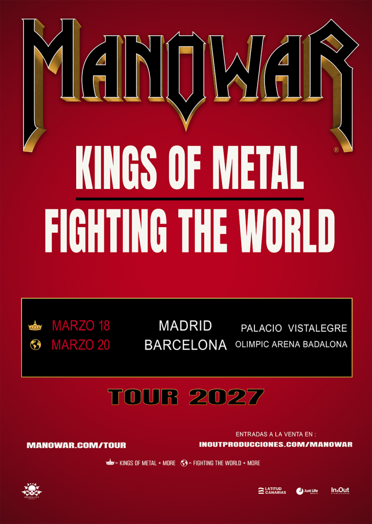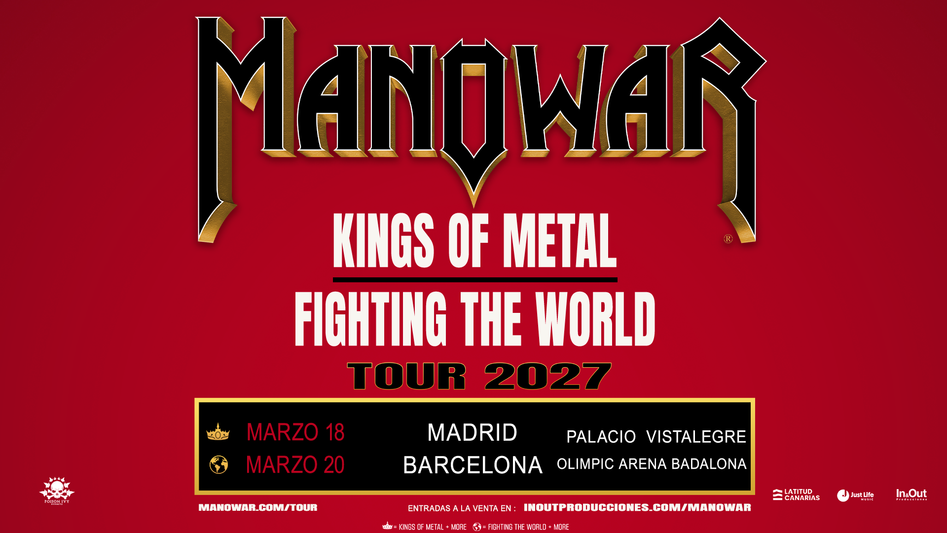 Fans de todo el país pidieron más, ¡y más tendrán! MANOWAR volverán a España en 2027 con su KINGS OF METAL FIGHTING THE WORLD TOUR 2027 para dos shows exclusivos en arenas que redefinirán los fundamentos del true metal una vez más!